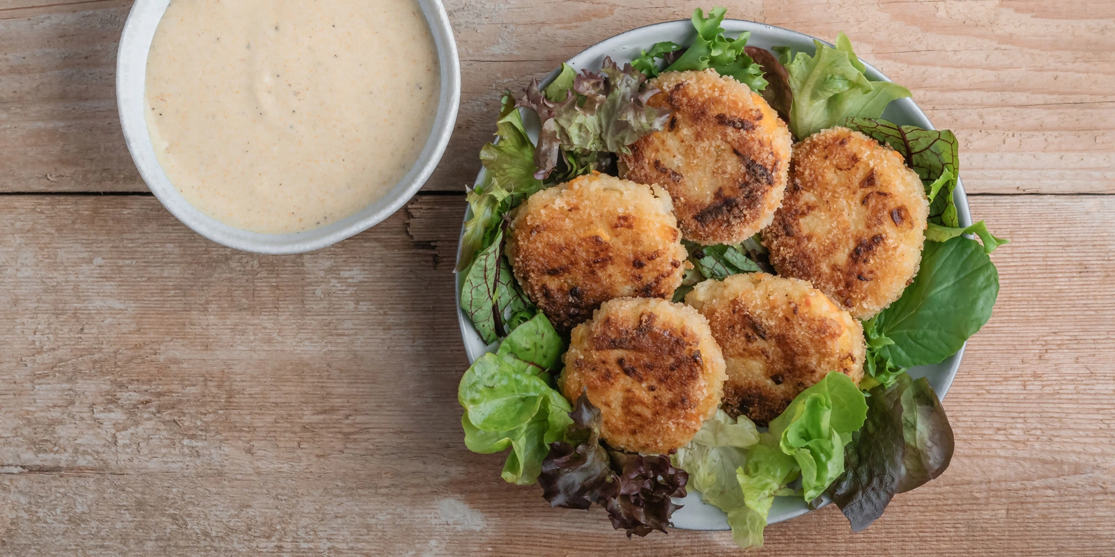 Kohlrabi-Karotten-Hirsetaler mit Curry-Dip